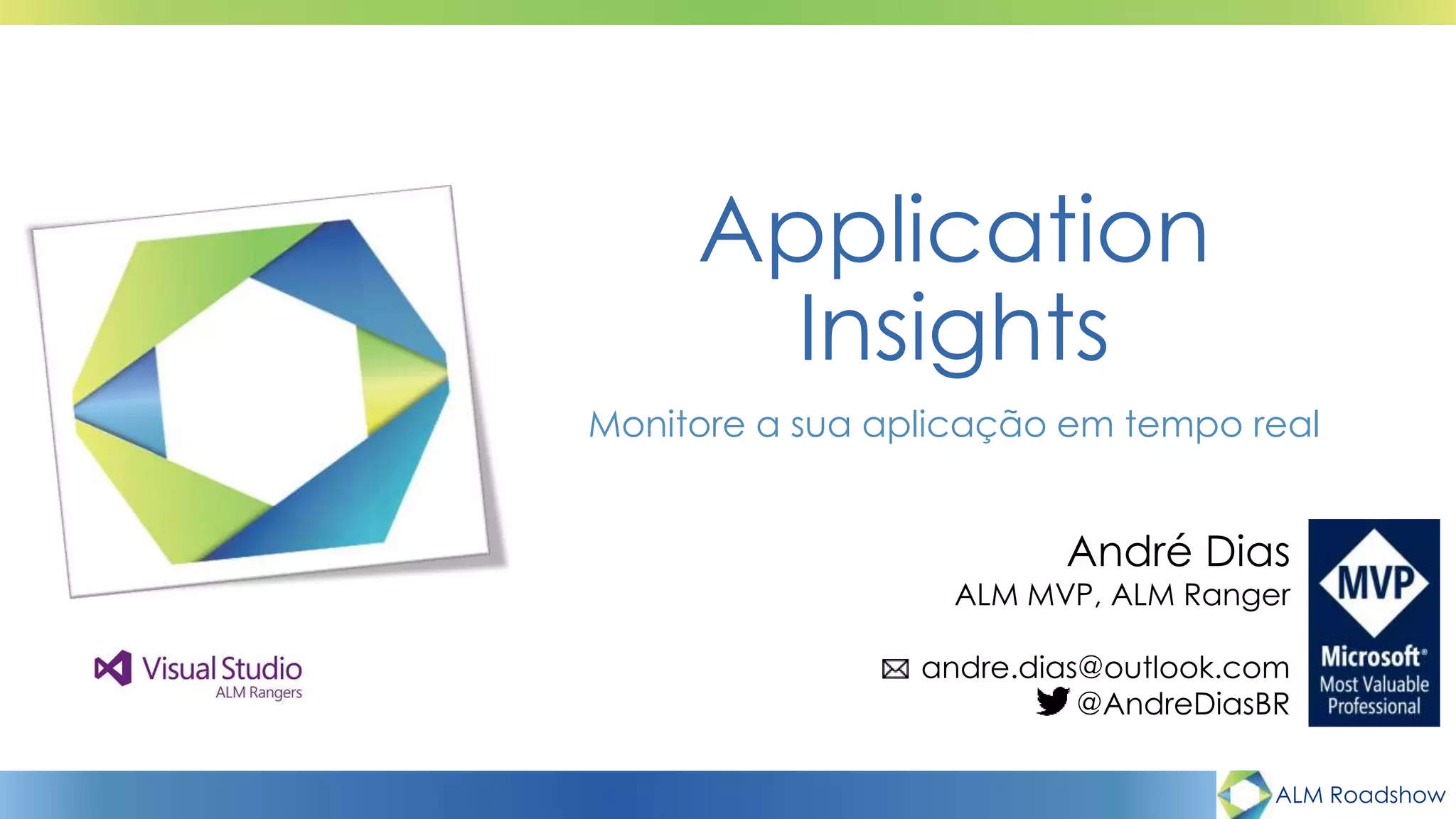 O documento apresenta a ferramenta Application Insights, que permite monitorar aplicações em tempo real, capturando telemetria de qualquer dispositivo ou aplicação e armazenando as informações na nuvem para análise. A ferramenta oferece visibilidade sobre disponibilidade, desempenho e padrões de uso, além de permitir monitorar URLs, dados do usuário, desempenho e dependências.