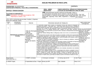 Este documento fornece orientações de segurança para serviços de terraplanagem e escavação mecânica e manual que serão realizados na área da Ambev em Maracanaú. Ele descreve os riscos envolvidos nas diferentes etapas do trabalho e medidas de controle, como uso de EPIs, isolamento da área, liberação via permissão de trabalho e treinamento da equipe.