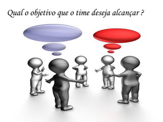 O texto discute a importância do trabalho em equipe para alcançar objetivos, comparando times de futebol e times de desenvolvimento de software. Para ter sucesso, cada membro de um time precisa contribuir de forma coordenada para que o objetivo comum seja atingido, ao invés de cada um trabalhar isoladamente.