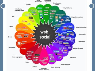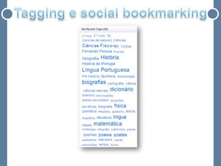 O documento discute como as tecnologias digitais estão transformando a aprendizagem e como as bibliotecas podem adaptar-se a estas mudanças. Promove o uso de ferramentas da web social para construir comunidades, comunicar, partilhar recursos e promover a aprendizagem colaborativa. Defende também que as bibliotecas devem adotar uma cultura de mudança e inovação para acompanhar as novas formas de aprendizagem.