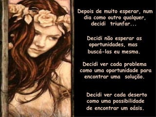 O documento descreve as lições aprendidas pelo autor sobre decidir triunfar buscando oportunidades, ver problemas como oportunidades e não se limitar. O autor também aprendeu que o amor é uma filosofia de vida e que os sonhos existem para se tornarem realidade.