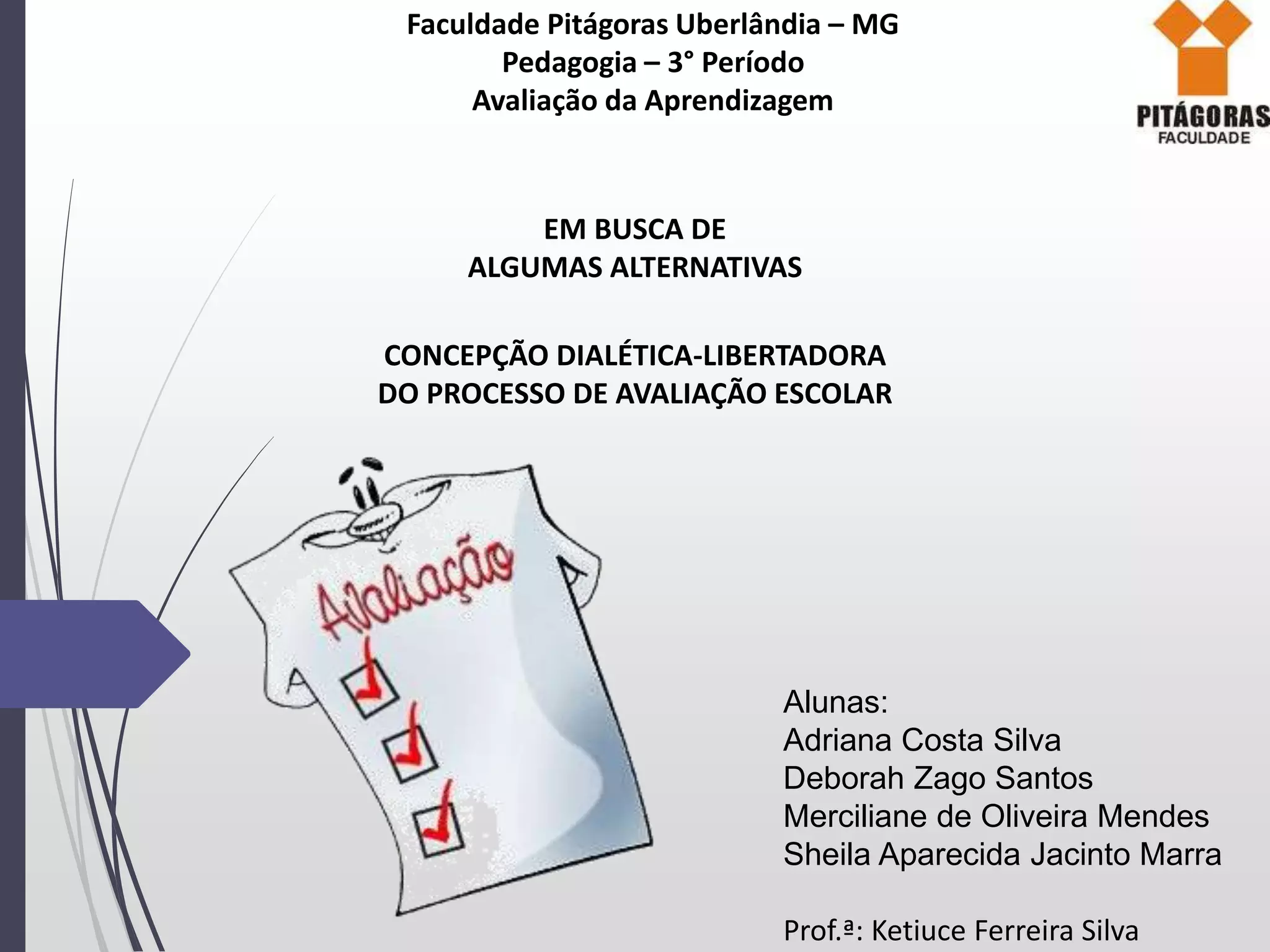 O documento discute alternativas para transformar a prática de avaliação escolar de forma dialética e libertadora, propondo quatro linhas de ação: 1) alterar a metodologia de trabalho para envolver os alunos ativamente; 2) diminuir a ênfase na avaliação classificatória; 3) redimensionar o conteúdo avaliado; 4) alterar a postura diante dos resultados da avaliação para mudar o que precisa ser mudado. A avaliação deve ter como objetivo a aprendizagem, não a nota.