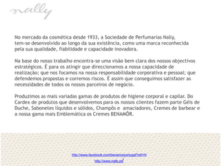 A Sociedade de Perfumarias Nally é uma empresa portuguesa de cosméticos fundada em 1933. Ela produz uma variedade de produtos de higiene corporal e capilar, incluindo géis de duche, sabonetes, champôs, cremes para barbear. Seu produto mais emblemático é a linha de cremes Benamôr, que tem sido popular em Portugal desde 1928. Recentemente, as vendas dos produtos Benamôr têm crescido internacionalmente.