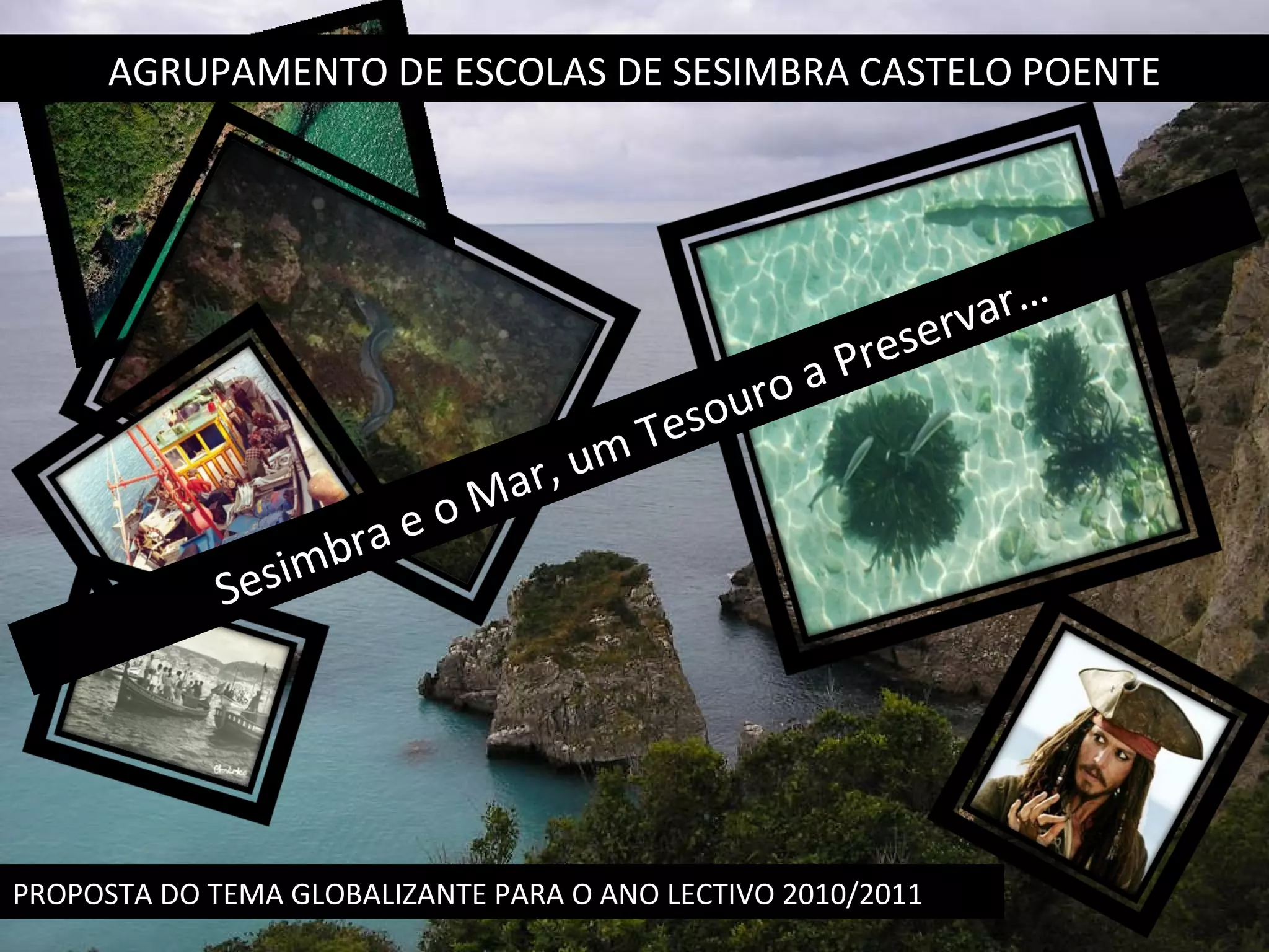Este documento propõe um tema globalizante para o ano letivo de 2010-2011 nas escolas de Sesimbra e Castelo Poente sobre "Sesimbra e o Mar, um Tesouro a Preservar". O tema abordará subtemas como o Parque Marinho Professor Luiz Saldanha, as artes piscatórias, a história de Sesimbra no final do século XIX e início do século XX, e terá como trabalho final uma exposição temática e festa de encerramento do ano letivo.