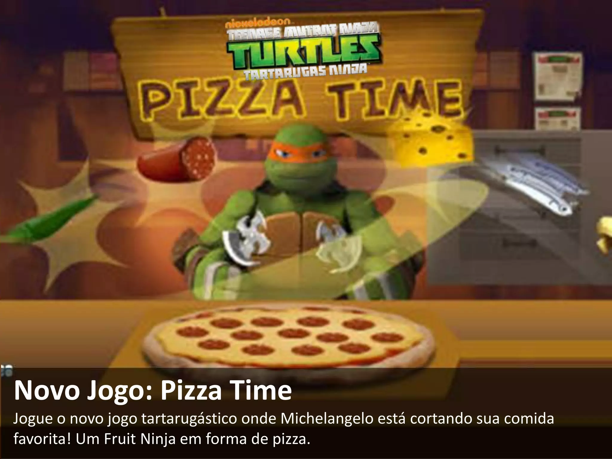 1) O novo jogo Pizza Time permite que os jogadores cortem pizza como Michelangelo em um estilo semelhante ao Fruit Ninja.