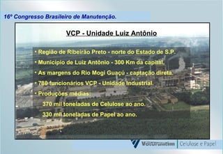 O documento descreve a experiência de sucesso da Votorantim Celulose e Papel em implementar uma gestão compartilhada entre manutenção e produção na unidade de Luiz Antônio. O projeto envolveu a reestruturação organizacional para integrar as equipes, treinamento dos funcionários em novas práticas e gestão voltada para a liderança. Isso resultou em melhorias significativas nos índices de produção, confiabilidade e redução do backlog de manutenção.