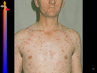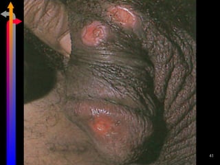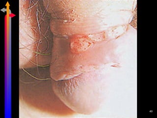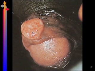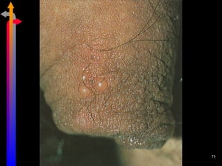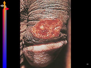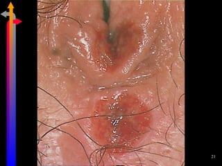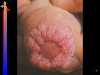 O documento discute as Doenças Sexualmente Transmissíveis (DST), incluindo agentes causais, formas de transmissão, sintomas, classificação e tratamentos. Aborda também a relação entre DSTs e a Síndrome da Imunodeficiência Adquirida (AIDS), destacando a importância do diagnóstico precoce e do tratamento para interromper a cadeia de transmissão.