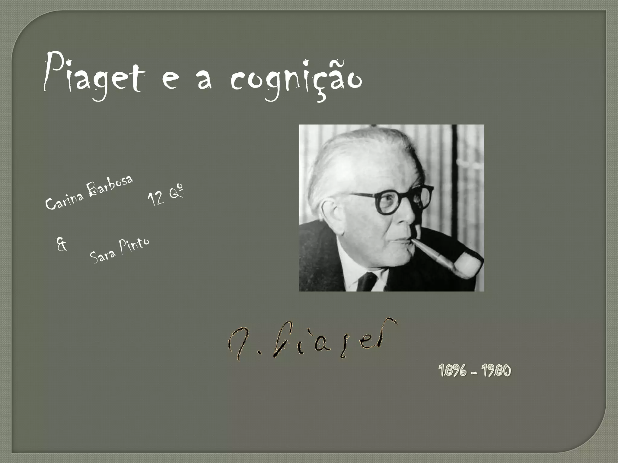 Jean Piaget foi um psicólogo suíço que desenvolveu uma teoria do desenvolvimento cognitivo infantil. Ele propôs que as crianças passam por quatro estágios de desenvolvimento - sensoriomotor, pré-operatório, operações concretas e operações formais - à medida que constroem esquemas mentais mais complexos através da interação com o mundo. Piaget baseou sua teoria em detalhadas observações do desenvolvimento de pensamento de crianças.