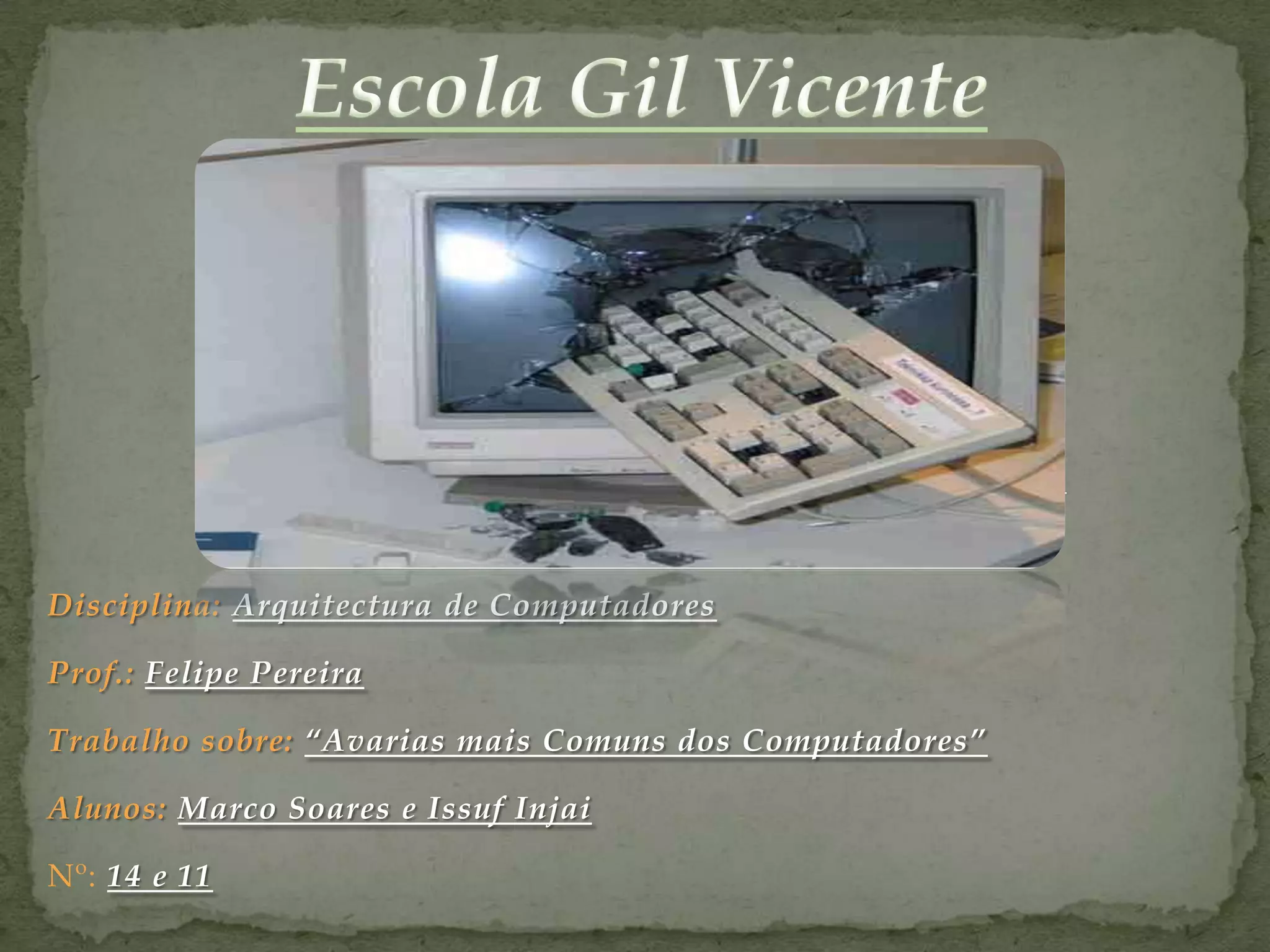 O documento discute problemas comuns em computadores e suas soluções, incluindo problemas de inicialização, vídeo, placa-mãe, teclado, CMOS, memória, disco rígido e impressora. É fornecido detalhes técnicos sobre diagnóstico e resolução de cada problema.