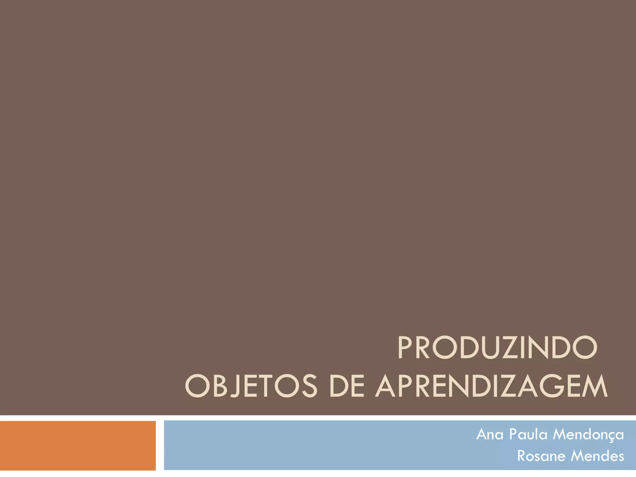 O documento discute objetos de aprendizagem, definindo-os como unidades de instrução reutilizáveis que podem ser digitais ou não. Ele explica suas características como reusabilidade, acessibilidade, interoperabilidade e durabilidade, além de abordar padrões de metadados e exemplos de objetos de aprendizagem.