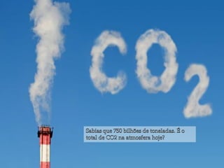 O documento discute as causas e efeitos da poluição atmosférica, incluindo como o aumento dos gases de efeito estufa causado por atividades humanas como indústrias e transporte está levando ao aquecimento global e ao buraco na camada de ozônio.