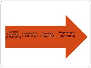O regime da Regeneração (1851-1870) promoveu o desenvolvimento dos transportes e comunicações em Portugal, como pontes e linhas ferroviárias, e políticas de livre comércio. A agricultura se modernizou, porém a industrialização foi lenta devido à fraca competitividade, mercado interno pequeno e falta de matérias-primas e capital. Apesar dos esforços, Portugal permaneceu atrasado em relação às grandes potências industriais.