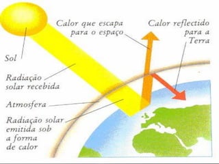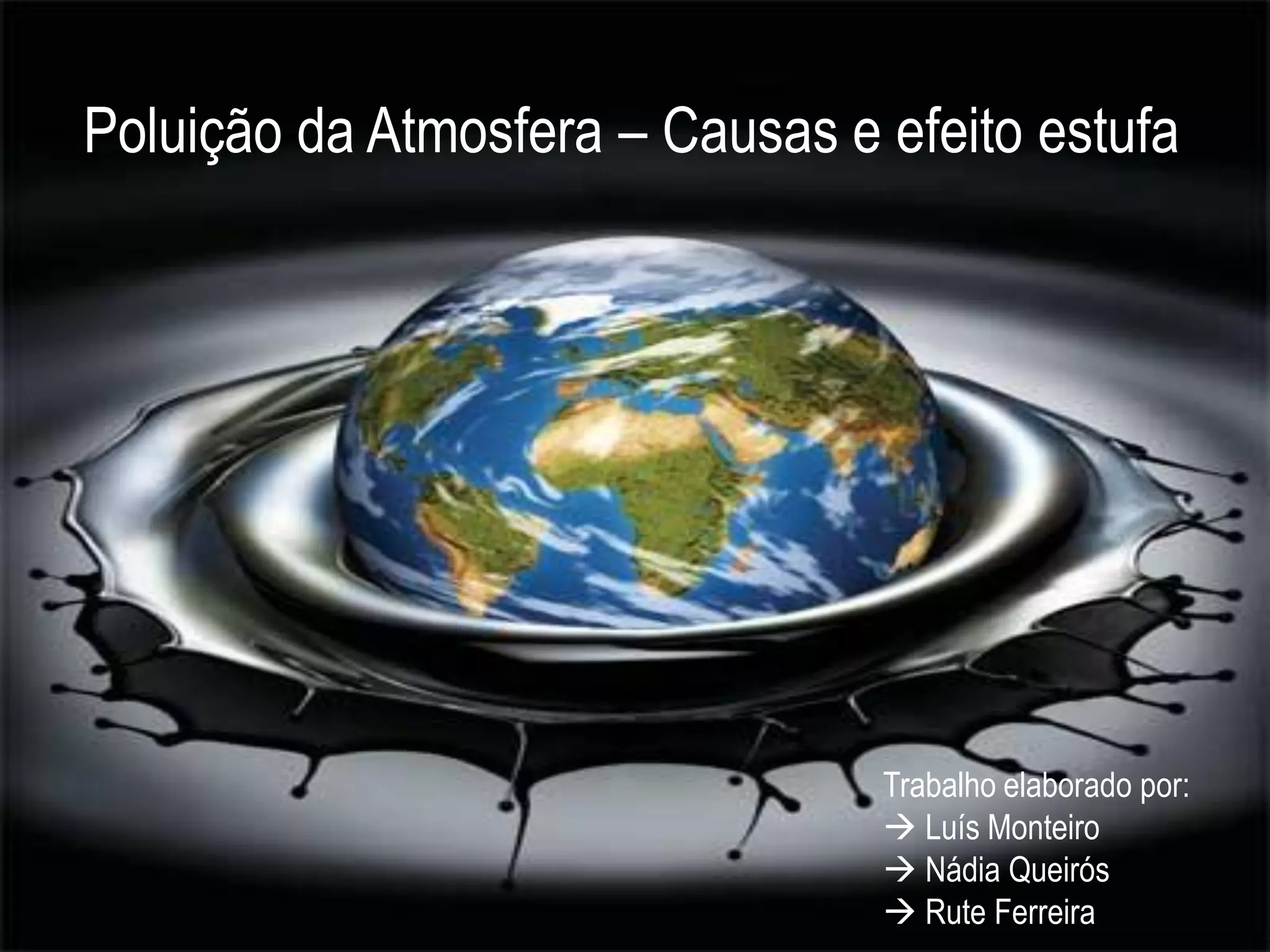 O documento discute as causas e efeitos da poluição atmosférica. A poluição é causada por emissões de gases de fábricas, veículos e transporte público, levando ao efeito estufa. Isso tem consequências como a eliminação de condições naturais e a existência de um buraco na camada de ozônio na Antártida. O documento também fornece recomendações para reduzir a poluição, como uso de energia renovável e técnicas sustentáveis na agricultura.