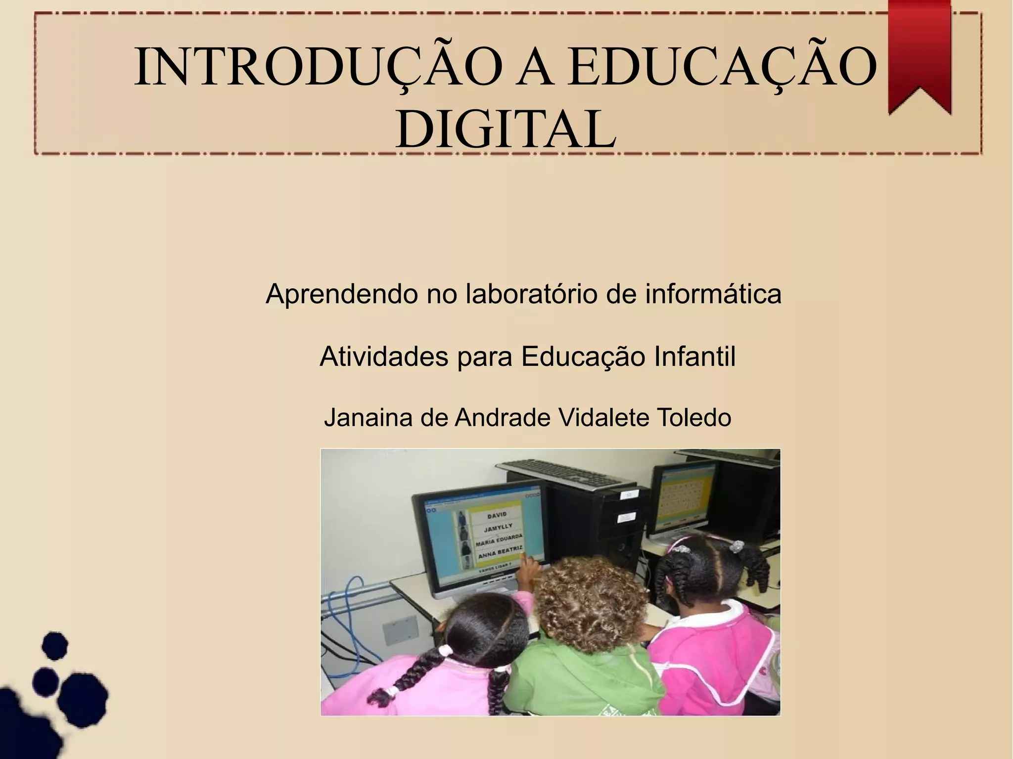 O documento apresenta um plano para introduzir crianças de 5 anos à educação digital com atividades de duas semanas no laboratório de informática, incluindo visitas, jogos educativos, e avaliação da participação e interesse das crianças.