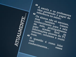 O documento descreve os princípios da pedagogia histórico-crítica de Dermeval Saviani. Ele propõe que a educação deve partir da prática social dos alunos, problematizá-la e instrumentalizá-la para promover a emancipação popular através do conhecimento sistematizado. O método contém cinco passos que visam transformar a compreensão dos alunos sobre a realidade social.