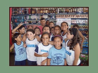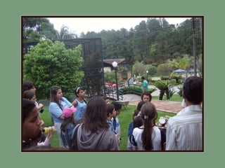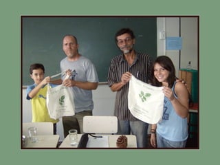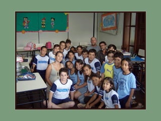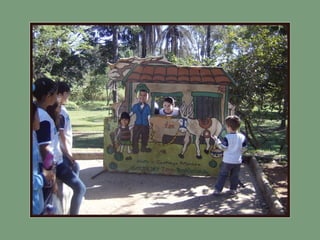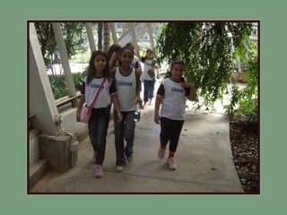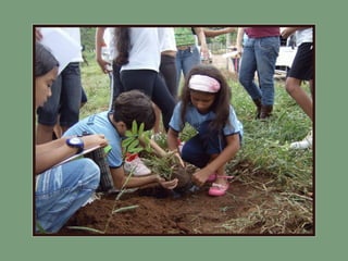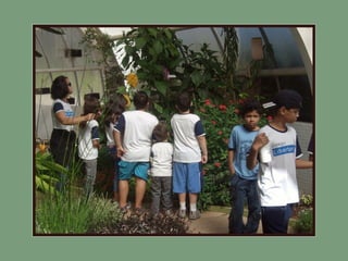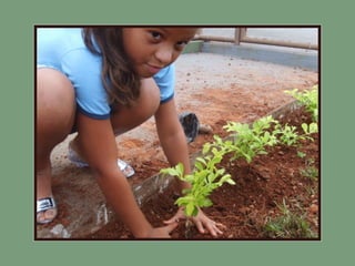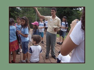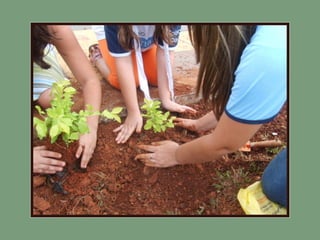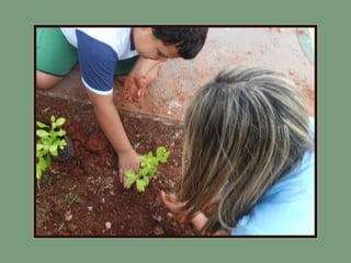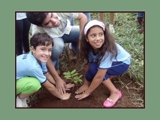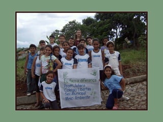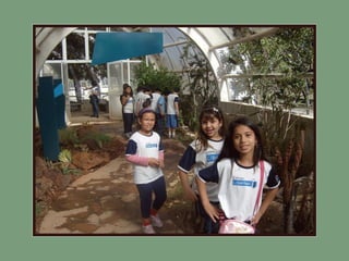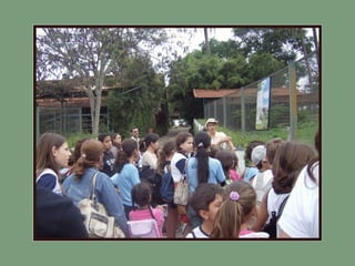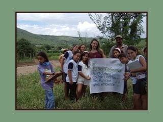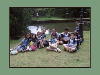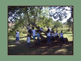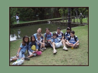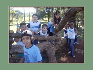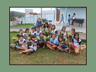 O documento descreve as atividades realizadas por alunos do 4o ano do ensino fundamental de uma escola durante um projeto ambiental que incluiu passeios educativos a locais como o zoológico e jardim botânico, almoço ao ar livre, plantio de mudas e atividades de reflorestamento e reciclagem. O projeto teve o objetivo de ensinar os alunos sobre a importância da preservação ambiental.