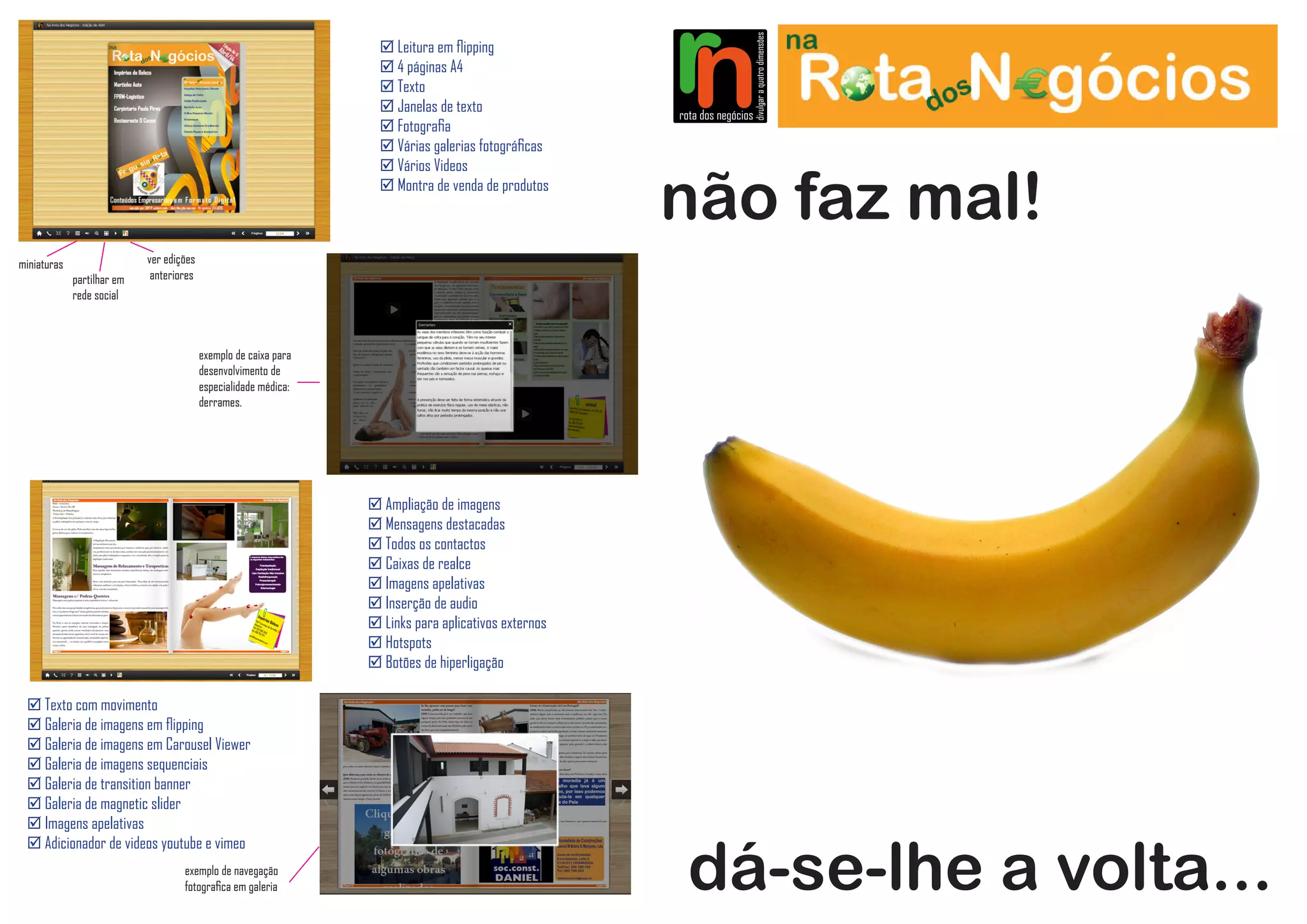 O documento descreve uma plataforma de marketing que oferece uma montra virtual de produtos para empresas, permitindo a atualização mensal e promoção de novidades via newsletters e redes sociais. Inclui características como galerias de imagens, vídeos, segmentação de anúncios e acesso através de dispositivos móveis. O alcance é significativo, com uma base de dados extensa e anúncios direcionados a uma audiência variada em Lisboa e Santarém.