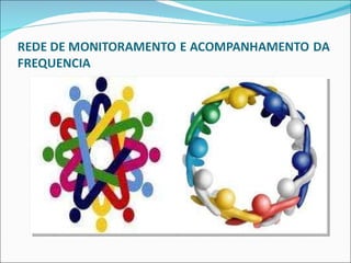 O documento fornece informações sobre a Rede de Monitoramento e Acompanhamento da Frequência em Goiás, incluindo endereços, contatos e quantitativo de escolas dos municípios jurisdicionados por cada rede regional. Apresenta dados sobre número de escolas por nível/modalidade em diversas cidades goianas.