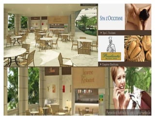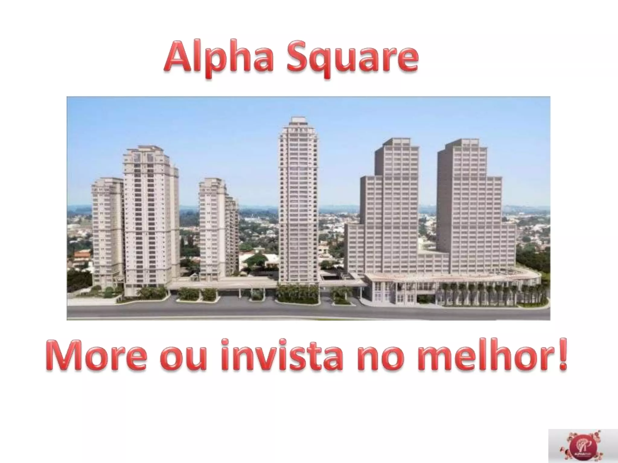 O documento descreve o empreendimento imobiliário Alpha Square localizado em Alphaville, São Paulo. O projeto inclui apartamentos residenciais de diferentes metragens, salas comerciais, shopping e diversas opções de lazer como piscinas, quadras, academia e bosque.