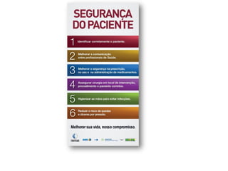 3) O Programa Nacional de Segurança do Paciente do Ministério da Saúde, que implementa protocolos como cirurg