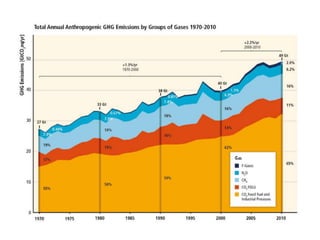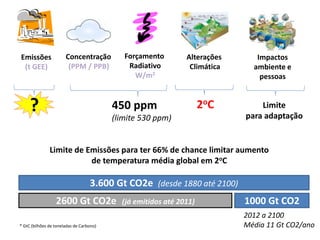 O documento discute as metas brasileiras de redução de emissões de gases de efeito estufa após 2020. Ele analisa as emissões históricas e projeções futuras do Brasil e do mundo, além de traçar possíveis caminhos para o Brasil atingir suas metas de redução de emissões e ter emissões líquidas próximas de zero até 2050.