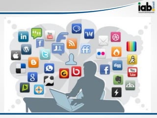 O documento discute planejamento de mídia digital no Brasil, incluindo números do mercado digital, participação dos meios de comunicação, e como institutos de pesquisa podem ajudar no planejamento de mídia.