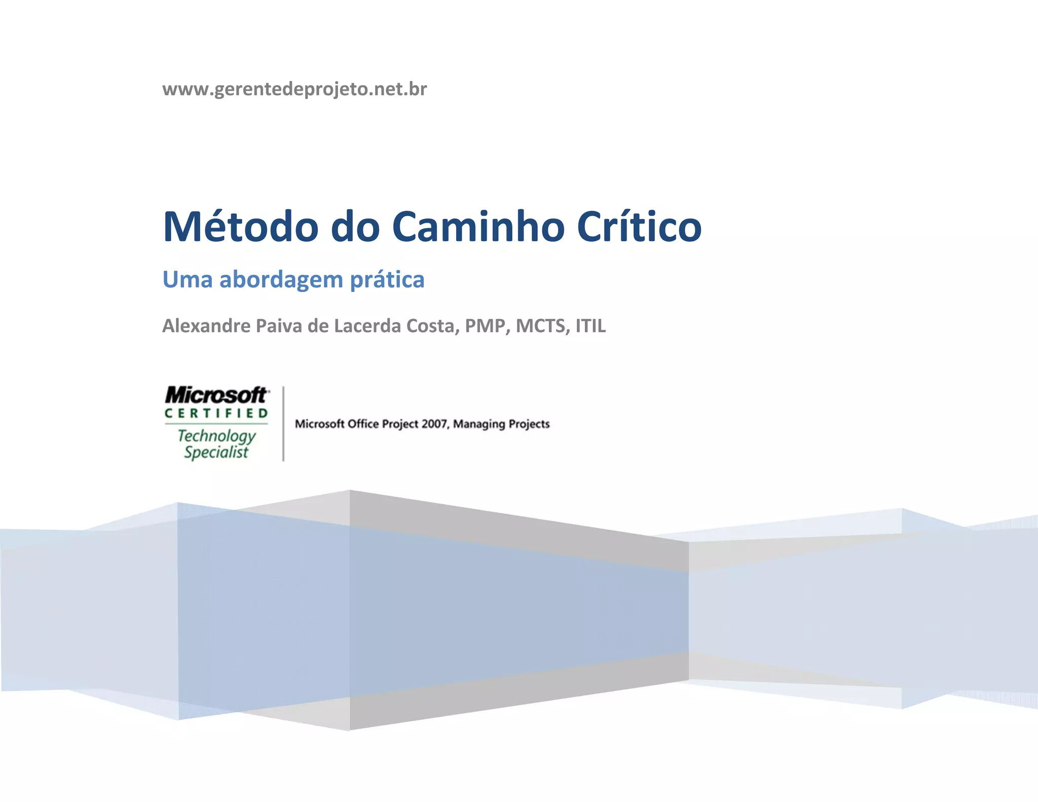 O documento descreve o método do caminho crítico para planejamento e controle de projetos. Explica como calcular as datas mais cedo e mais tarde de atividades usando análise de passo à frente e passo atrás. Também mostra como identificar o caminho crítico, folga total e livre para monitorar atrasos.