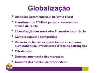 O documento discute os conceitos fundamentais de estratégia de negócios, incluindo vantagem competitiva sustentável, posicionamento competitivo, análise interna e externa, e implementação de estratégias. Ele também aborda tópicos como globalização, economias emergentes, origem da estratégia e como medir o sucesso de uma estratégia.