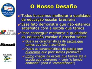 O documento discute a necessidade de reconceituar a educação e reinventar a escola diante das mudanças trazidas pela sociedade da informação. A nova escola deve ter como objetivo o desenvolvimento humano através de projetos, com alunos protagonistas e tecnologia como ferramenta para acesso a informações, comunicação, disseminação de experiências e aprendizagem colaborativa.