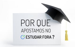 O documento discute as vantagens de estudar em universidades no exterior, como a experiência intercultural e o desenvolvimento de competências. Aponta que o número de brasileiros estudando fora cresceu 414% na última década e destaca programas que apoiam esse processo, como o portal Estudar Fora.