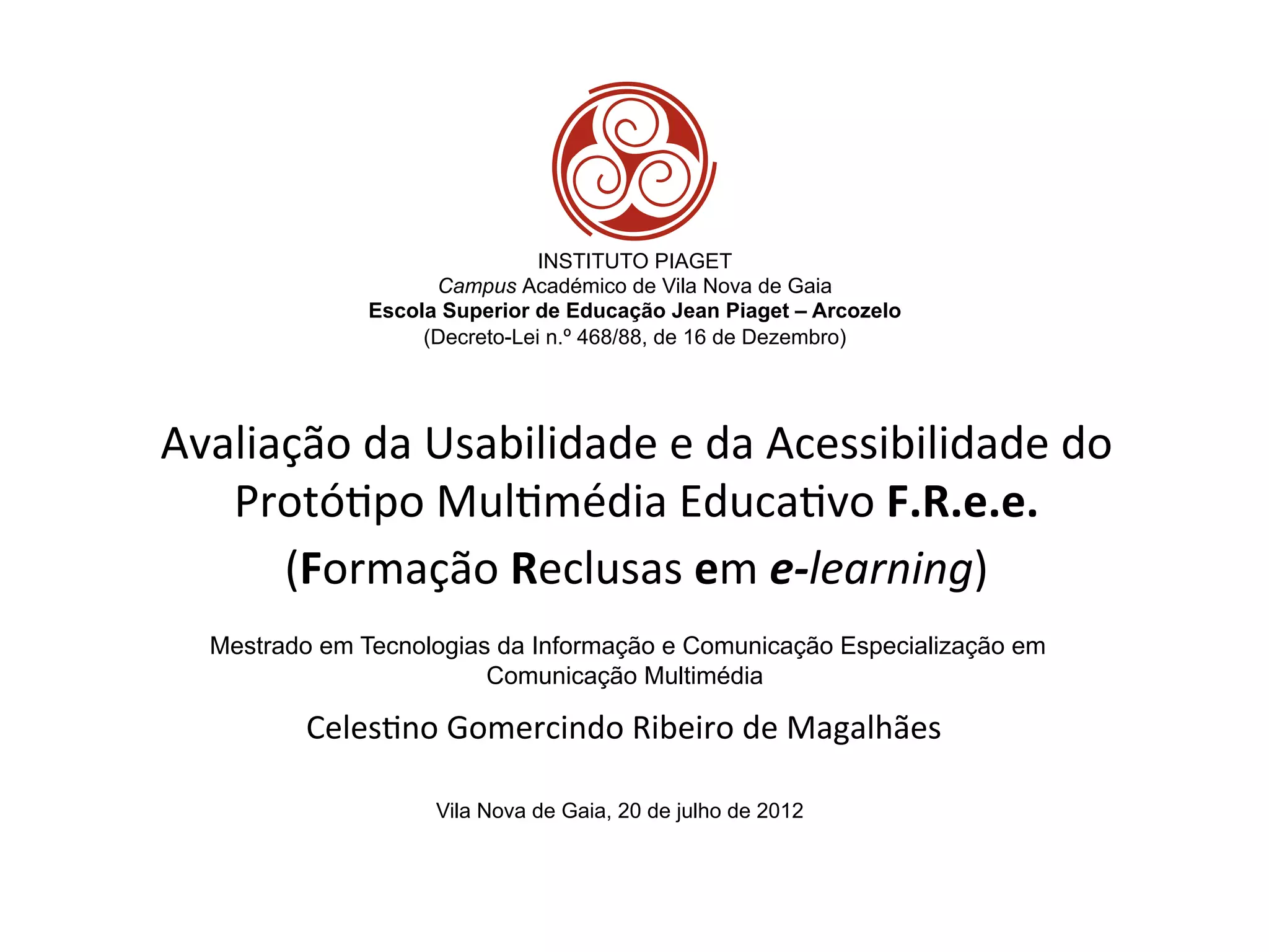 1) A avaliação da usabilidade e acessibilidade de um protótipo educacional multimídia para a formação de reclusas chamado F.R.e.e. utilizando testes de usabilidade e avaliação heurística.