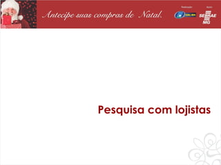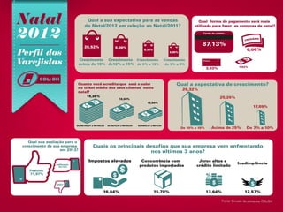 A pesquisa mostra que a maioria dos lojistas espera crescimento nas vendas de Natal acima de 15% em 2012. Os preços e o atendimento são os fatores mais importantes para os consumidores nas compras. A maior parte dos consumidores iniciará as compras em dezembro e pretende gastar entre R$50-R$75, pagando principalmente no dinheiro ou parcelado no cartão.