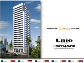 O documento apresenta as características de um empreendimento residencial com opções de 1 e 2 dormitórios, 20 andares e diversas comodidades como salão de festas, área fitness, cinema, piscina, deck e sauna. Inclui também plantas do imóvel e detalhes sobre vendas pela construtora.