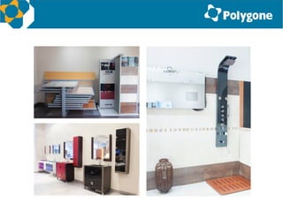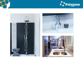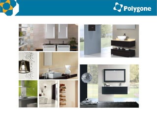 O documento apresenta uma empresa de materiais de construção chamada Polygone. A empresa oferece uma ampla gama de produtos de marcas renomadas, assessoramento técnico no showroom, montagem de mobiliário de banheiro, encomendas personalizadas e entrega. A Polygone busca fornecer um serviço de qualidade aos seus clientes residenciais, empresariais e profissionais de arquitetura e decoração de interiores.