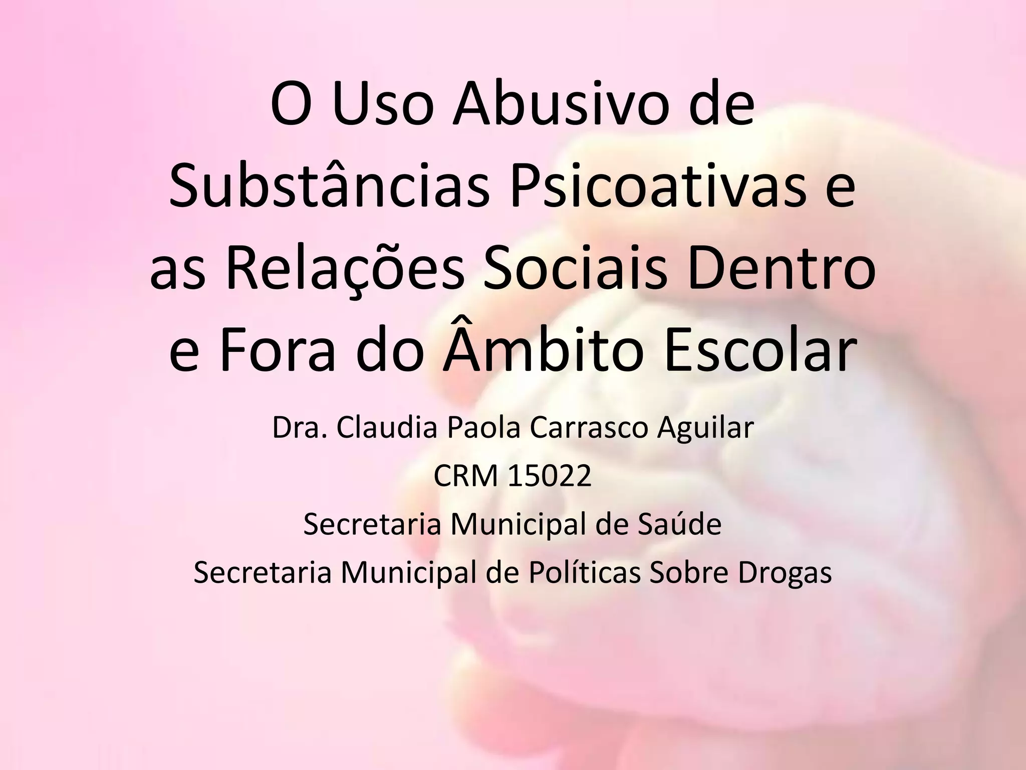 O documento discute 3 tópicos principais: 1) As características do desenvolvimento adolescente e como isso influencia o uso de substâncias, 2) Os fatores de risco e proteção para o uso de drogas na escola, 3) Estratégias que a escola pode adotar para promover a resiliência e prevenção do uso, como vínculos afetivos e ambiente estimulante.
