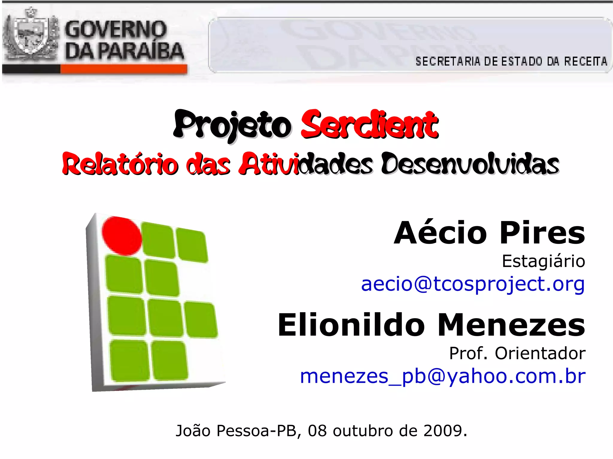 O relatório apresenta as atividades do Projeto SerClient, cujo objetivo era implementar uma rede de clientes magros para a Secretaria da Receita da Paraíba. Foram realizadas várias fases, incluindo pesquisa, implementação, testes e documentação, resultando em um ambiente de gerenciamento centralizado e redução de custos. O projeto foi descontinuado, mas forneceu soluções que podem ser analisadas e aplicadas em futuras iniciativas.