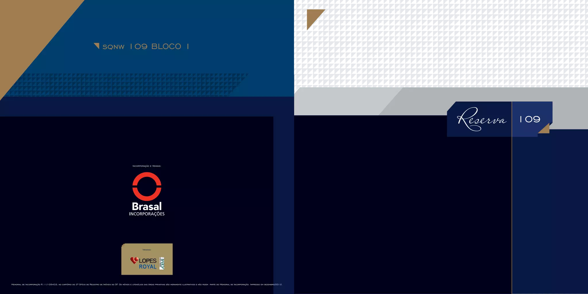 O documento descreve as características e especificações do empreendimento imobiliário Reserva 109, localizado no Setor Noroeste de Brasília. O projeto inclui 84 unidades privativas de apartamentos de 2 e 3 quartos e coberturas duplex, com diversas áreas de lazer e comodidades. O Reserva 109 oferece sofisticação, requinte e exclusividade para seus moradores.