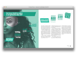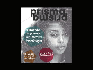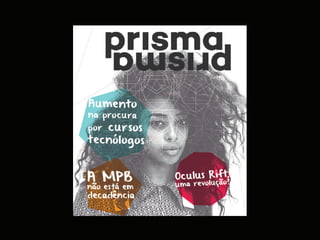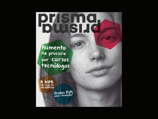Este documento descreve um projeto de uma revista chamada PRISMA sobre cursos superiores tecnológicos. Ele apresenta a proposta de identidade visual da revista incluindo logotipo, cores, tipografias, diagramação e projeto gráfico. Além disso, fornece um orçamento para impressão de 10.000 ou 1.500 cópias da revista.