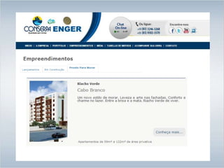 Este documento descreve um novo empreendimento residencial localizado em uma área privilegiada. O condomínio oferece apartamentos de 59m2 a 122m2 com 2 quartos e suíte, além de áreas comuns como piscina, academia, salão de festas e estacionamento. As unidades possuem cozinha, sala e varanda e algumas contam com terraço e piscina privativa.