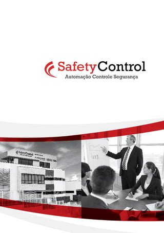 O documento apresenta produtos e soluções de automação industrial das empresas ABB, WAGO e LEUZE ELECTRONIC. A Safety Control atua como parceira destas marcas oferecendo produtos de qualidade para automação, controle e segurança.