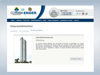 O documento descreve um condomínio residencial localizado no bairro Altiplano em São Paulo. O condomínio oferece vários serviços e comodidades como piscina, quadra poliesportiva, salão de festas, spa e academia. Os apartamentos contam com 4 suítes, sala ampla, cozinha e varanda. A entrega da obra está prevista para janeiro de 2013.