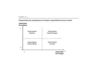 O documento discute a transformação da sociedade para a era digital e da economia do conhecimento. Apresenta como a digitalização está mudando estilos de vida, organizações, negócios e a própria economia, levando ao surgimento de setores como o quaternário (tecnologia da informação) e o quinário (conhecimento, criatividade e inovação). Também destaca os desafios que as organizações enfrentam nessa evolução, como atrair talentos criativos e incentivar a inovação.