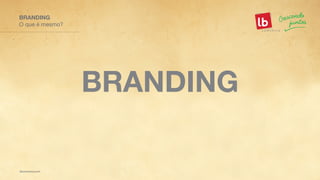 O documento discute o que é branding. Ele explica que branding é a gestão da percepção de uma marca através do tempo, envolvendo a criação de uma identidade visual consistente, posicionamento da marca e comunicação estratégica com os públicos-alvo. O documento também descreve os principais elementos e etapas do processo de branding.