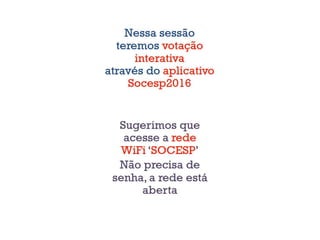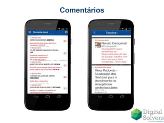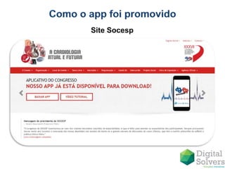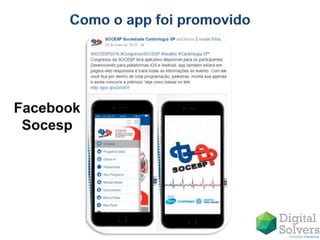 O documento descreve um aplicativo mobile desenvolvido para a Sociedade de Cardiologia do estado de São Paulo para seu evento anual entre 26 e 28 de maio de 2016. O aplicativo forneceu informações sobre o programa, palestrantes, mapas, votação interativa, fotos e gamification para incentivar o engajamento dos usuários. Os dados coletados mostraram alto nível de satisfação e engajamento dos participantes com o aplicativo.