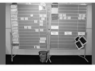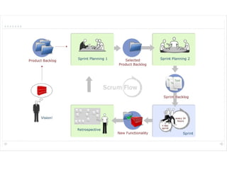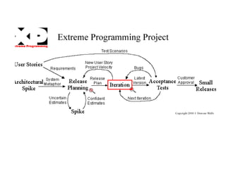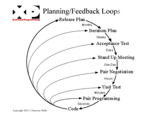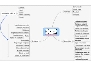 O documento discute metodologias ágeis como XP e Scrum. Apresenta brevemente a história da engenharia de software e problemas com métodos tradicionais. Explica princípios do Manifesto Ágil e como XP e Scrum enfatizam valores como indivíduos, colaboração, resposta à mudança. Descreve papéis, práticas e estruturas de planejamento em XP e Scrum.