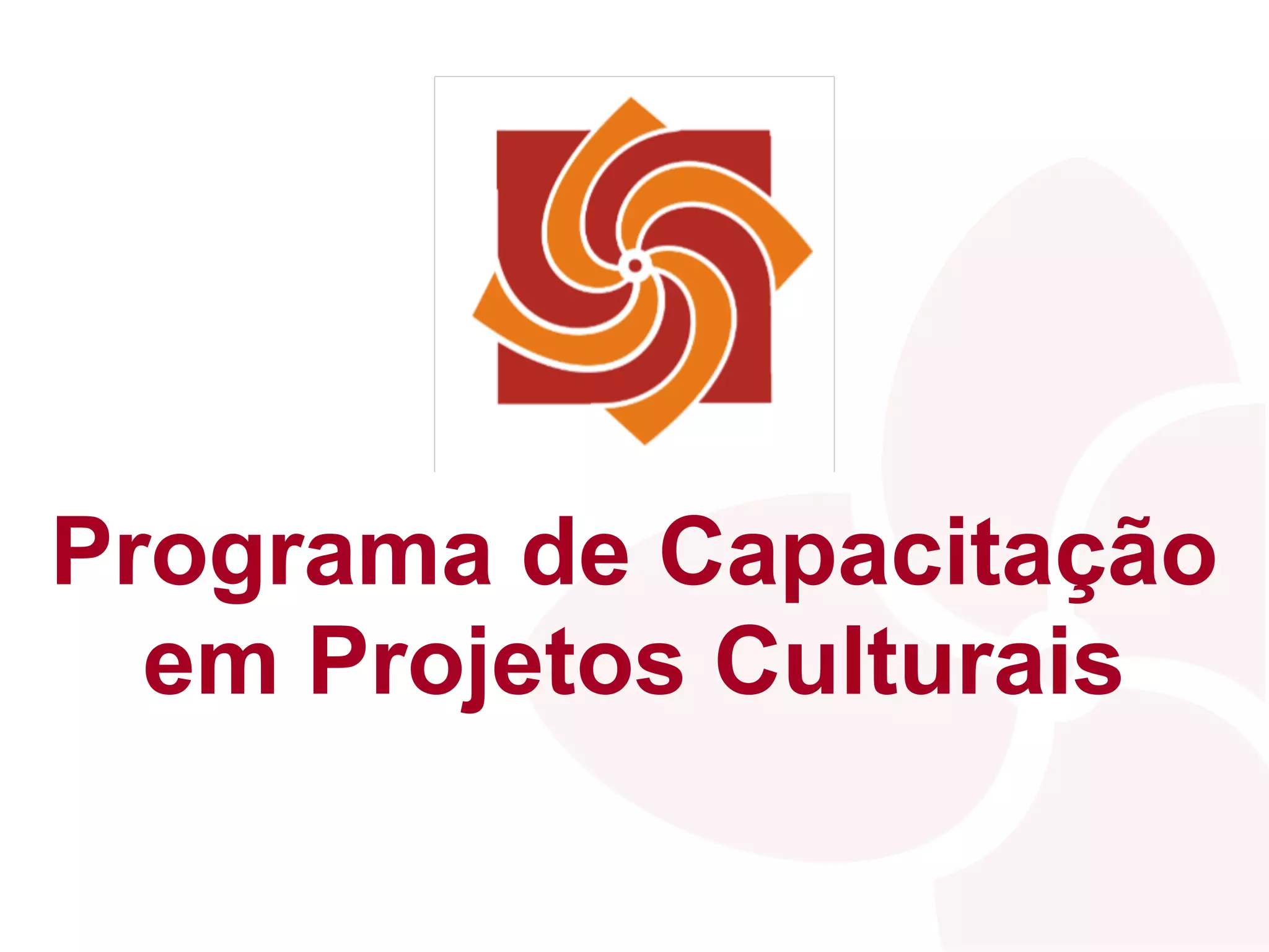 O documento descreve um programa de capacitação para agentes culturais dos setores público e privado com o objetivo de ensinar sobre elaboração e gestão de projetos culturais de forma alinhada às políticas públicas e capazes de buscar diversas parcerias e apoios. O programa iniciou em 2008 com oficinas presenciais e agora terá novas etapas incluindo cursos online e oficinas presenciais em várias regiões do Brasil.