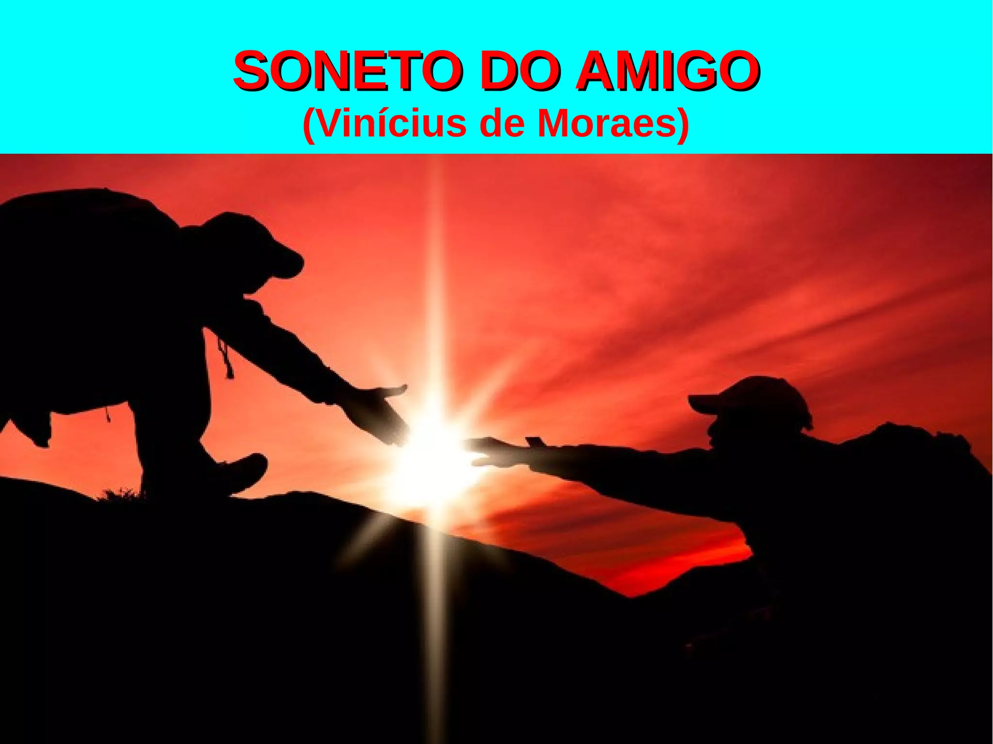 O poema descreve a alegria de reencontrar um velho amigo depois de passar por muitos erros e perigos. O poeta vê no amigo um ser igual a ele, simples e humano, que sabe se mover e comover os outros. O amigo é como um espelho da alma do poeta que o ajuda a se conhecer melhor.