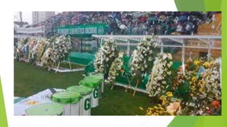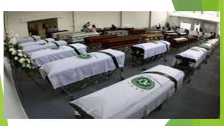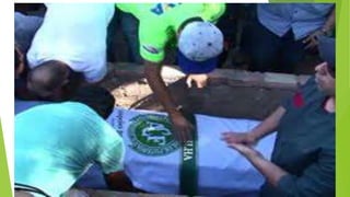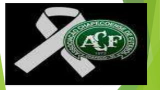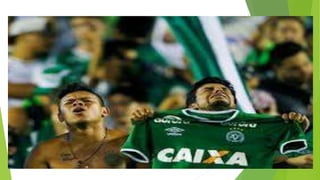 O documento discute a tragédia do acidente aéreo que matou jogadores e membros da equipe da Chapecoense em 2016, com o avião caindo devido a uma falha elétrica. Também mostra homenagens à Chapecoense e mensagens de apoio ao time em meio à tristeza pela perda.