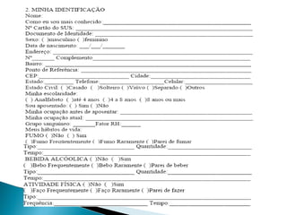 Este documento apresenta uma caderneta de saúde para pessoas idosas com o objetivo de identificar sinais de risco e fragilidade para que ações de saúde possam ser tomadas de forma precoce. A caderneta deve ser preenchida por agentes comunitários de saúde ou profissionais de saúde e contém seções sobre identificação do idoso, hábitos de vida, medicamentos, quedas e outros dados relevantes para avaliar a saúde e autonomia do idoso.