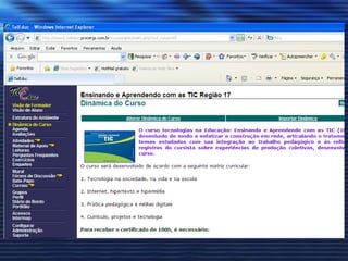1) O documento descreve um curso de 100 horas sobre tecnologias na educação oferecido pelo MEC como parte do Programa Nacional de Tecnologia Educacional.